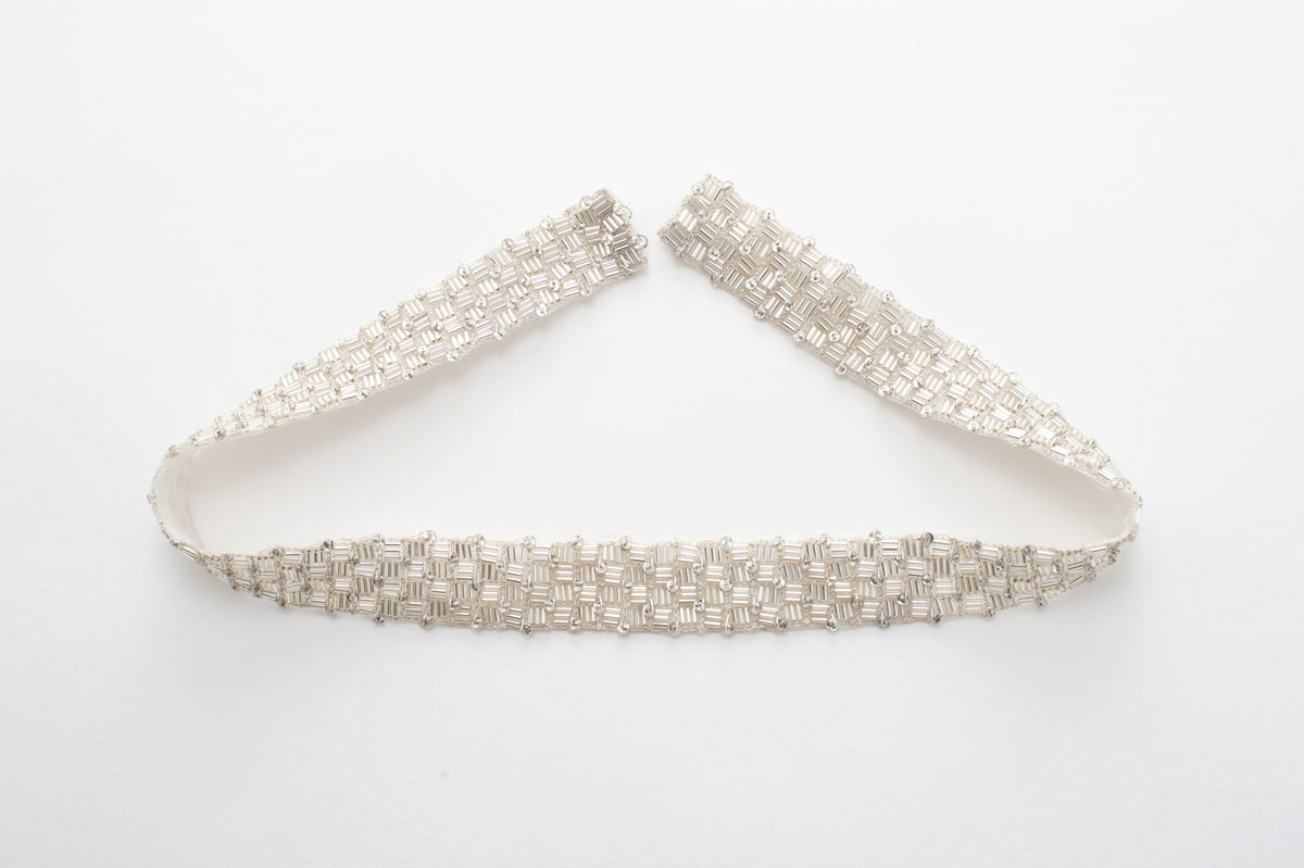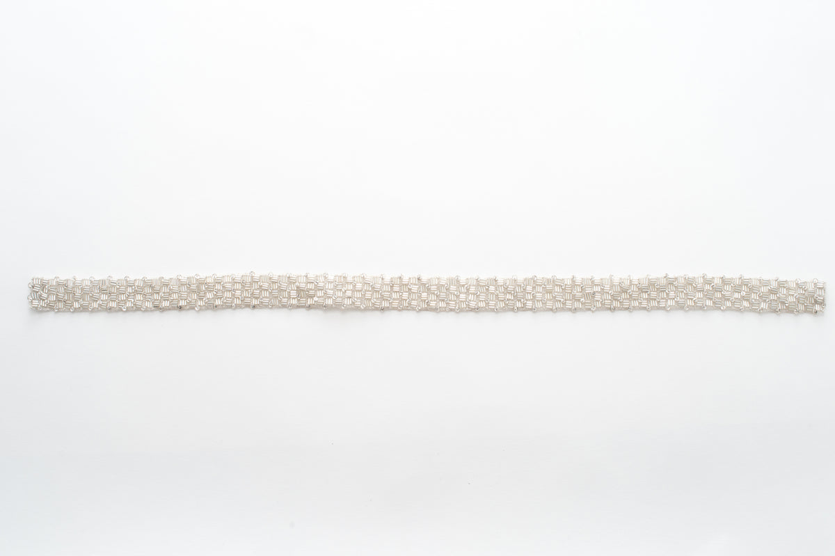 standard size is 18" of beading attached to a luxurious satin ribbon in the color of your choice