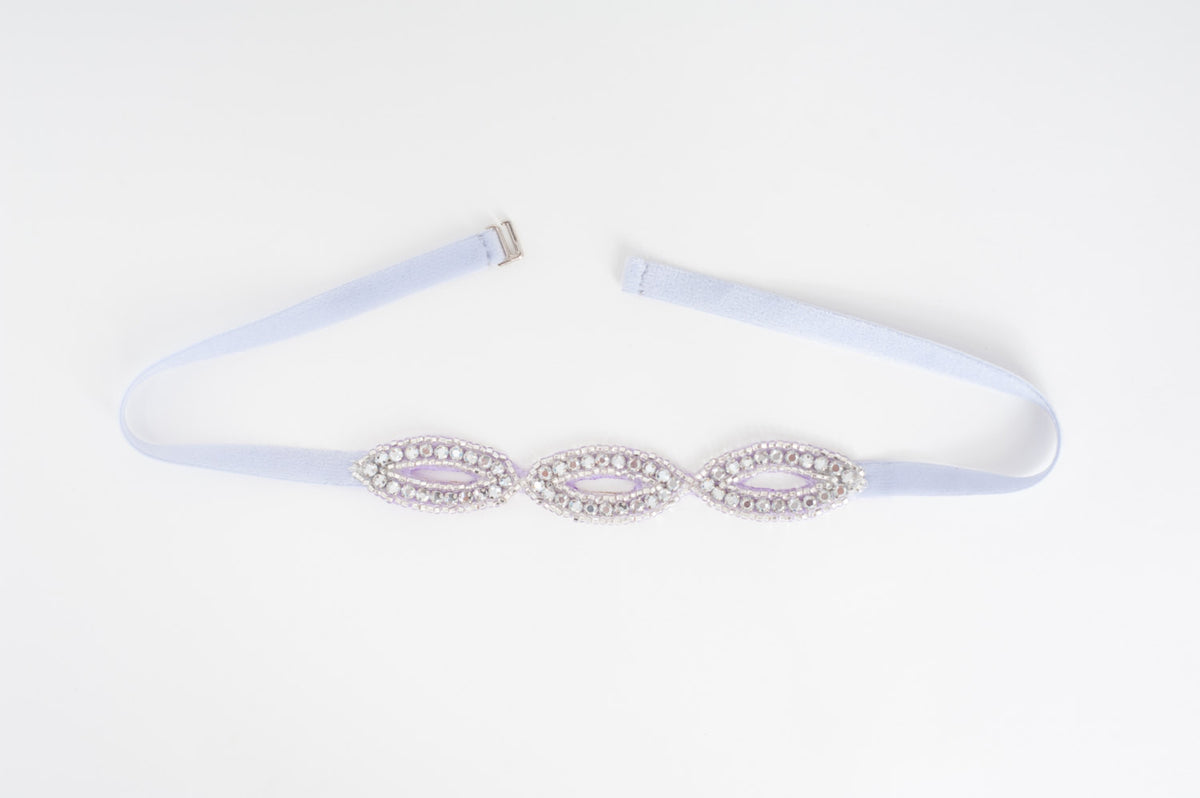 rich rhinestones beading on a soft velvet stretch ribbon or stretch satin (silver ivory or gold)
