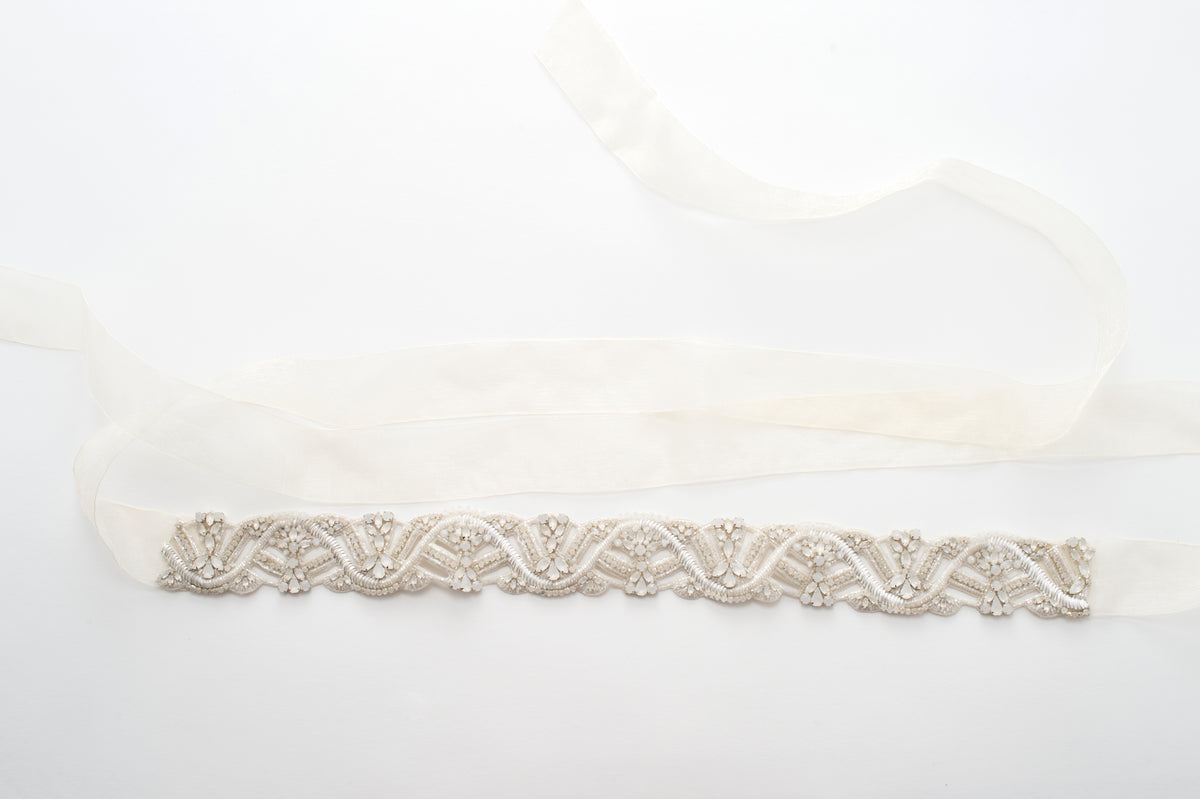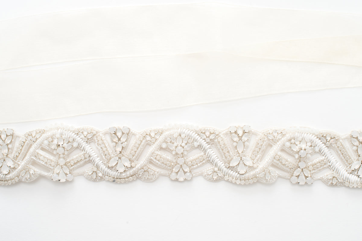 white opal wedding sash - style 20057