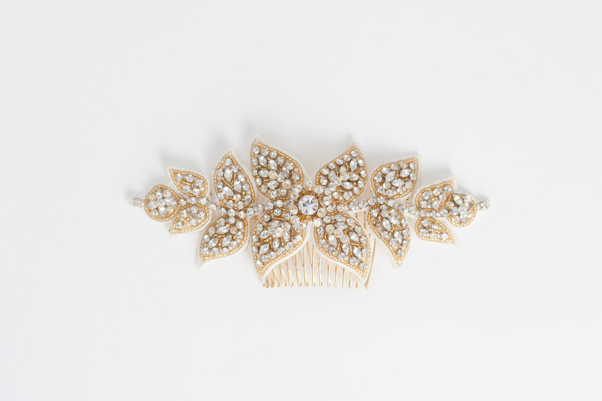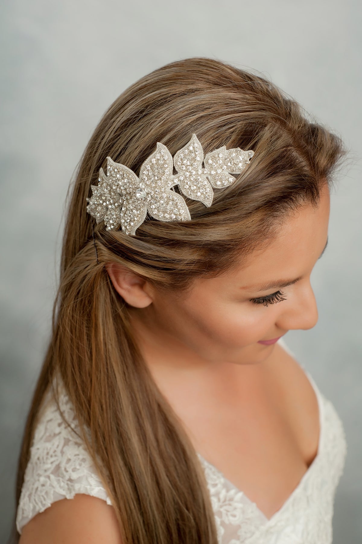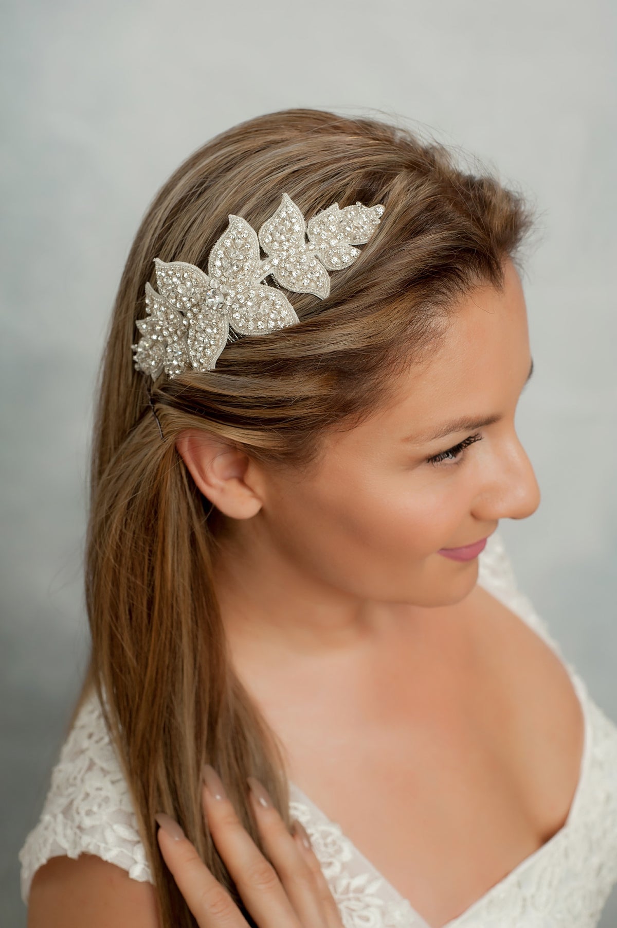 luxurious hand beaded leaves with glass rhinestones and embroidery