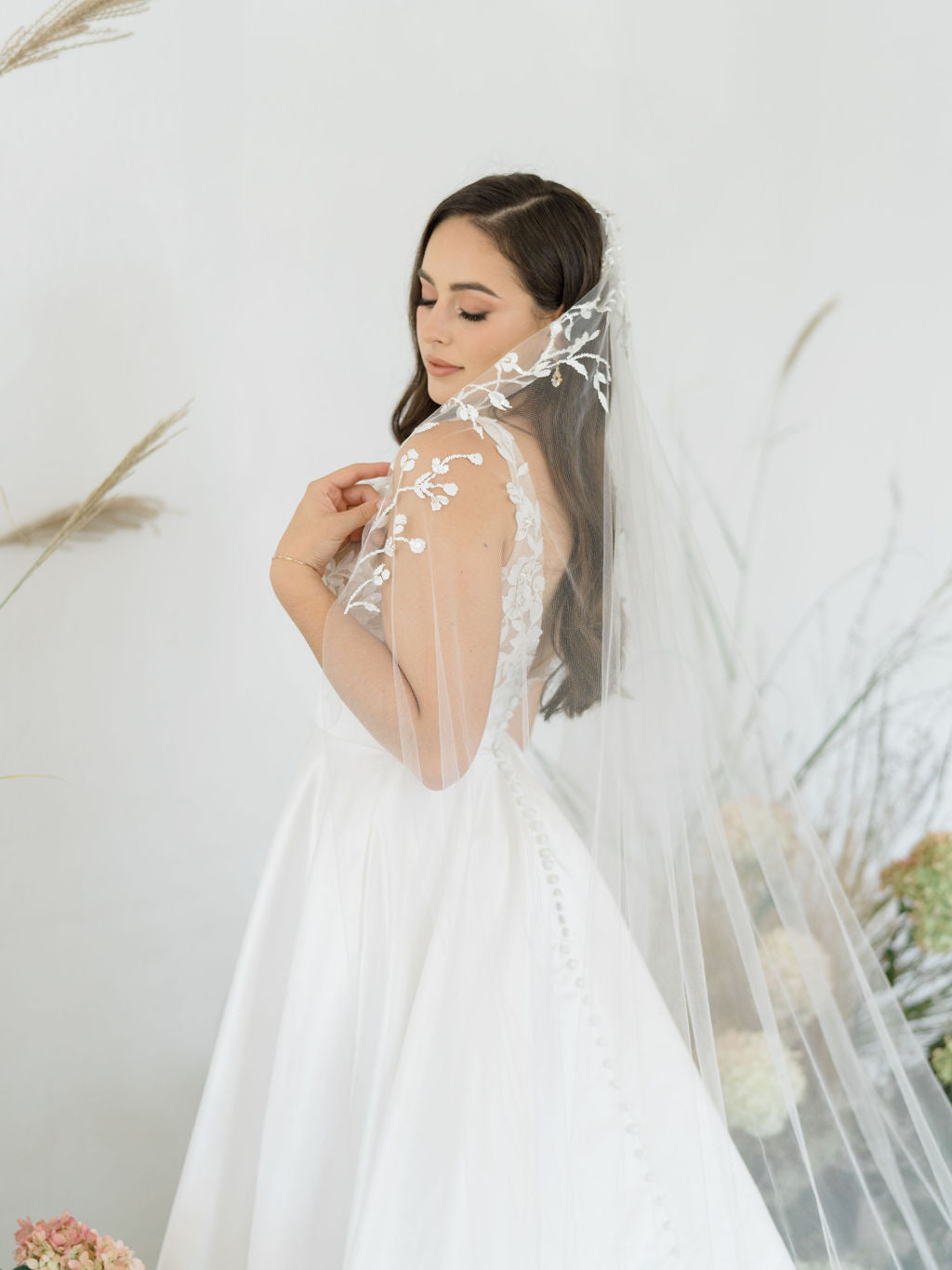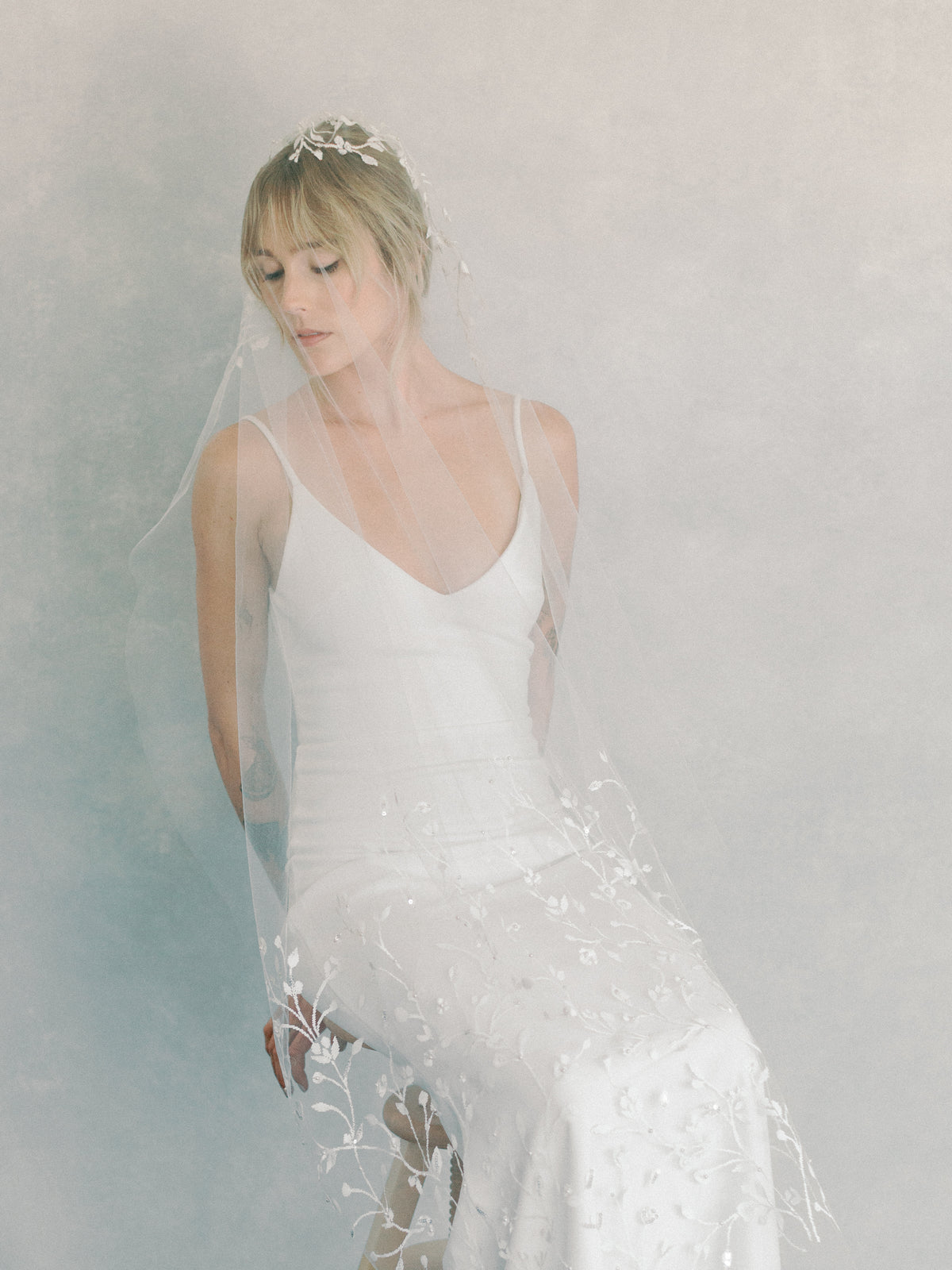 the fingertip size of this veil have been a total best seller and as a response to a general request, we've design the Chapel size