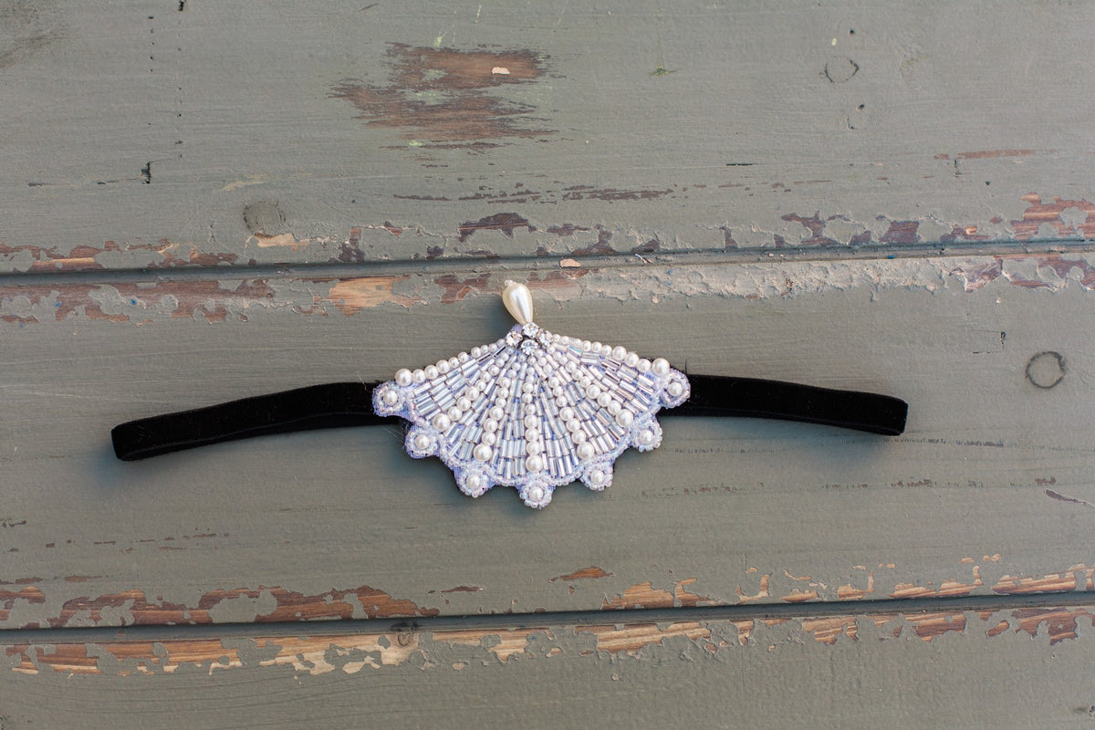 silver and pearls fan beading