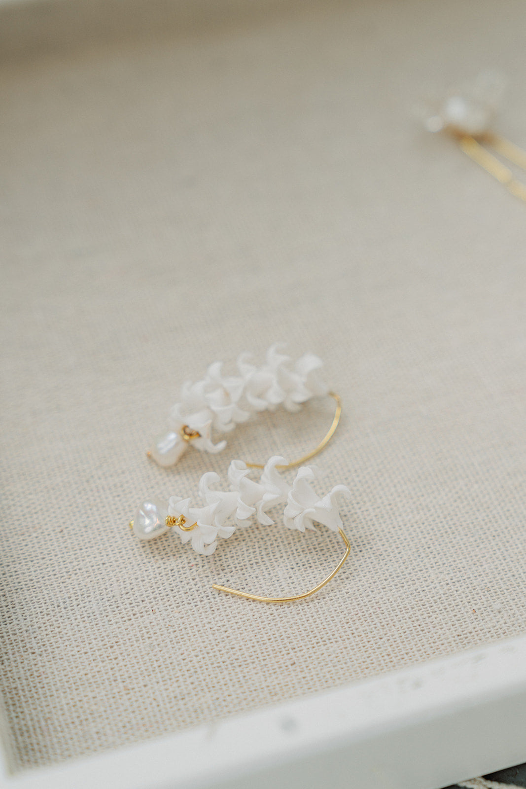 floral earrings, handmade with polymer clay flowers, earring wire and Keshi pearls. Elegant and unique.