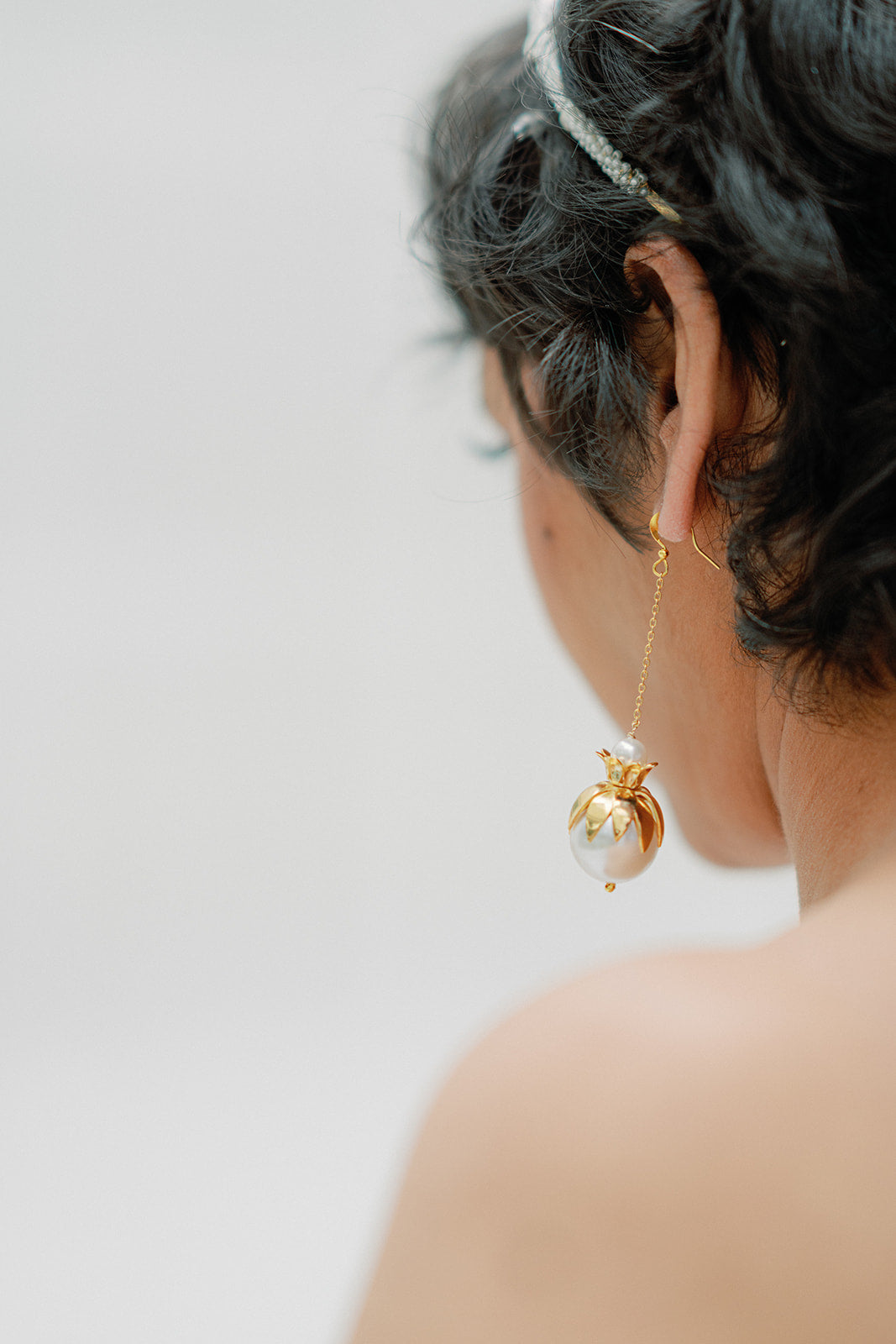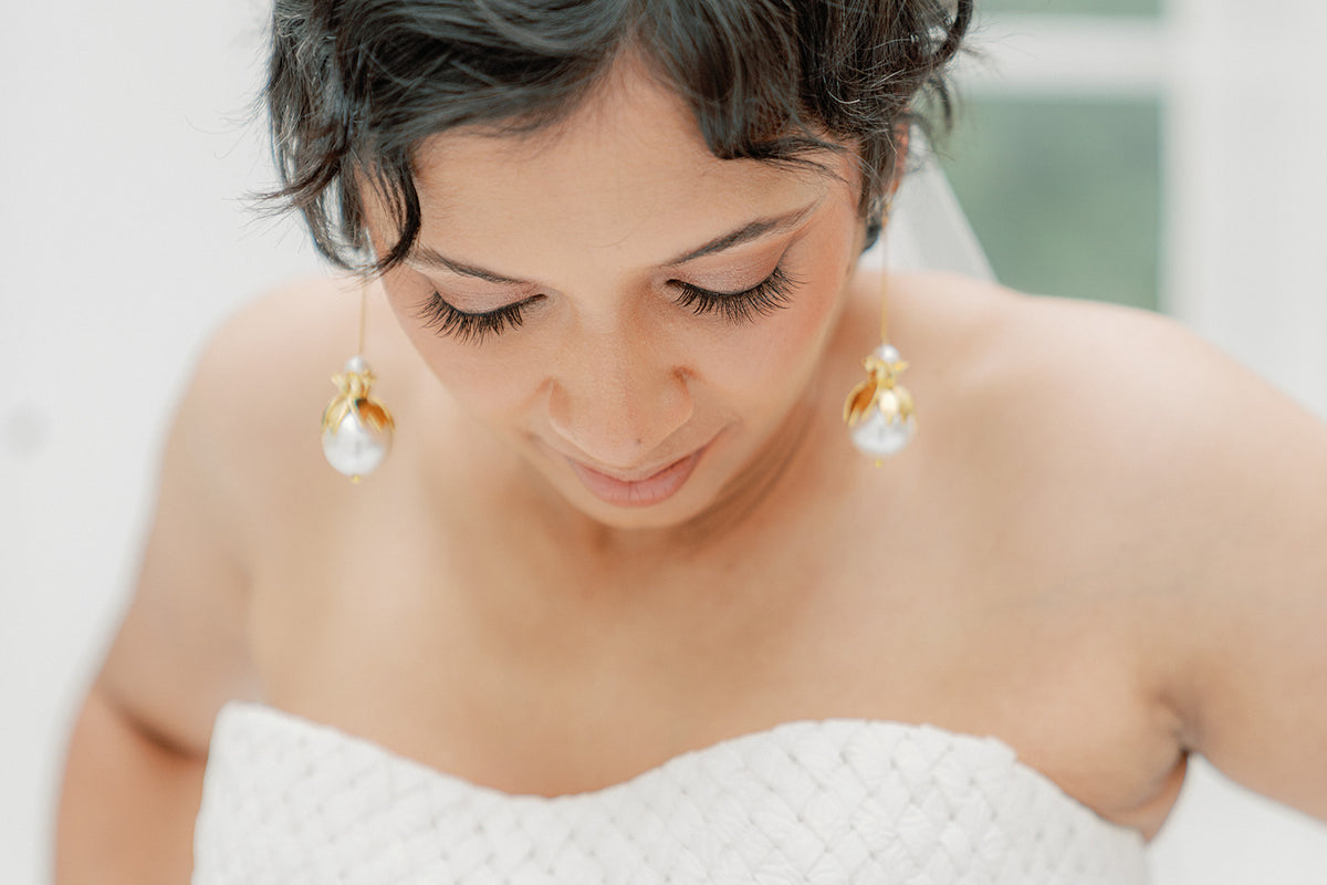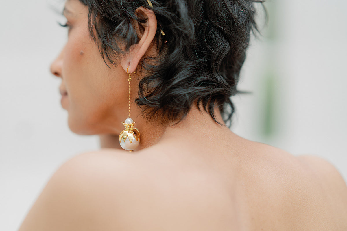 brass floral earring with oversize Pearl - ASTRID- 25032